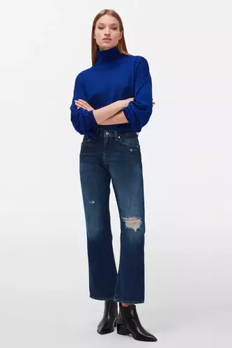 Jeansy skrócone o kroju straight fit 7 for all mankind z efektami znoszenia