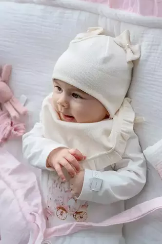Jamiks czapka dziecięca MADONNA kolor beżowy z cienkiej dzianiny JWH070