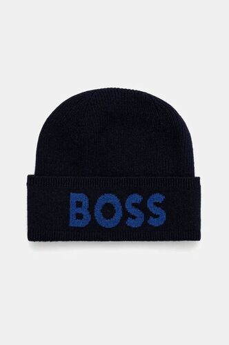 BOSS czapka z domieszką wełny kolor granatowy męskie akcesoria z cienkiej dzianiny 50524348