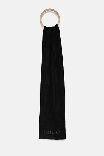 HUGO szalik wełniany kolor czarny gładki 50527826 męskie akcesoria
