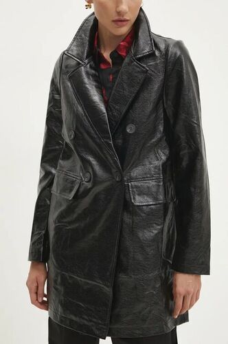 Answear Lab płaszcz skórzany damski kolor czarny przejściowy dwurzędowy