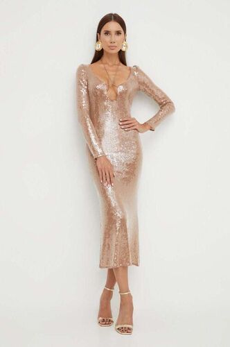 Bardot sukienka kolor beżowy midi bardot dopasowana