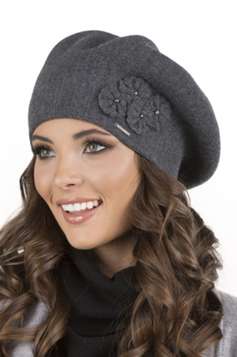 Vivisence 7007 Nakrycie głowy beret, ciemnoszary wełniany beret damski