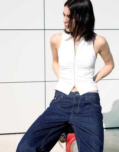 Bershka Top Z Popeliny Z Suwakiem Kobieta Xs Kremowy