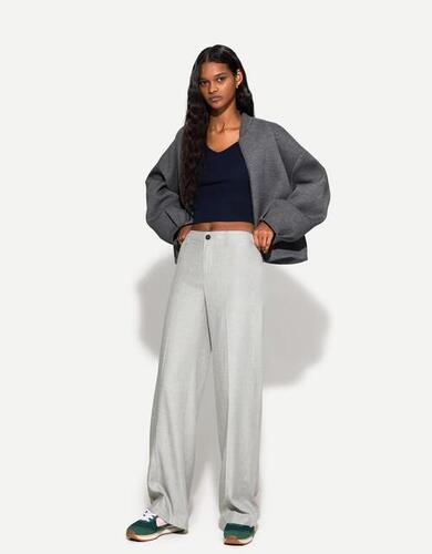 Bershka Spodnie Z Szerokimi Nogawkami Kobieta 38 Szary