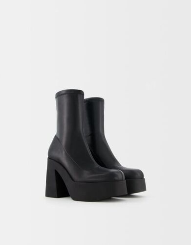 Bershka Dopasowane Botki Za Kostkę Na Platformie I Obcasie Kobieta 37 Czarny
