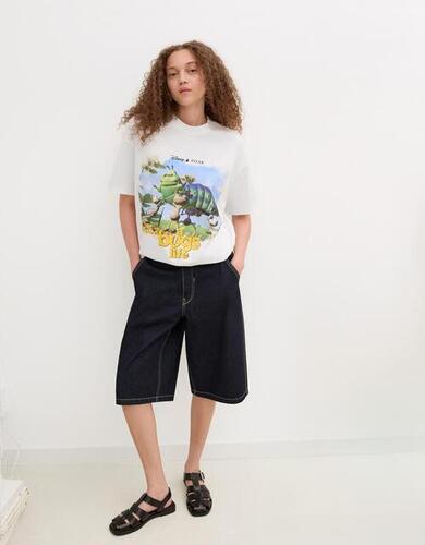 Bershka Koszulka Z Krótkim Rękawem I Nadrukiem A Bug’s Life Kobieta L Biały Złamany
