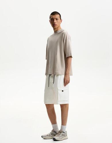 Bershka Koszulka Oversize Z Krótkim Rękawem Mężczyzna L Biały