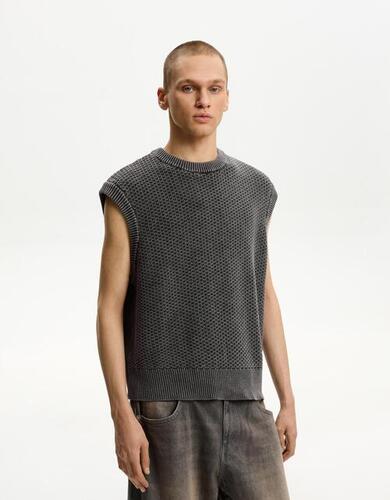 Bershka Kamizelka O Splocie Waflowym Z Efektem Sprania Mężczyzna S Ciemnoszary