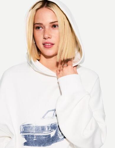 Bershka Bluza Z Kapturem I Nadrukiem Kobieta S Kremowy