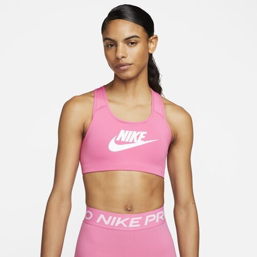 Damski stanik sportowy z stanik sportowy biały grafiką zapewniający średnie wsparcie Nike Swoosh - Różowy