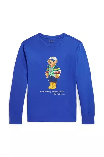 Polo Ralph bluzki chłopięce Lauren longsleeve bawełniany dziecięcy kolor niebieski z nadrukiem 323883620012