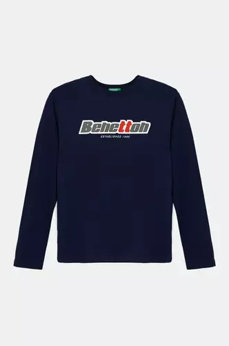United Colors of Benetton longsleeve bawełniany bluzki chłopięce dziecięcy kolor granatowy z nadrukiem 3I1XC10N5