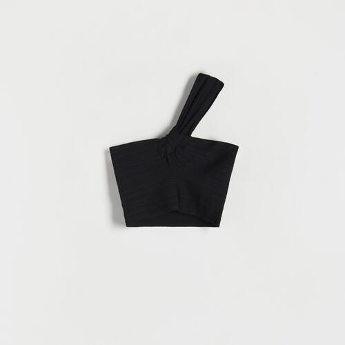 Reserved - Prążkowany czarne bluzki damskie crop top - Czarny