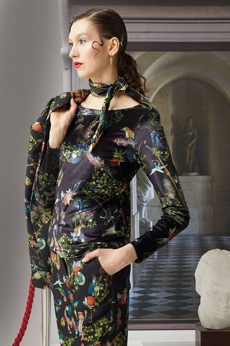 Bluzka krótka z długim rękawem czarne bluzeczki damskie i nadrukowanym motywem na całej powierzchni model ‘NOVA’