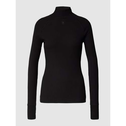 Bluzka z długim rękawem i naszywką czarne bluzki damskie eleganckie z logo model ‘Mock’