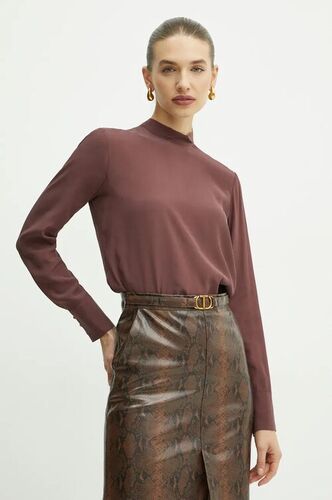 Twinset bluzka z domieszką jedwabiu kolor czerwony gładka bluzki damskie czerwone 242TT2341