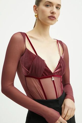 Patrizia Pepe czerwone bluzki damskie body damskie kolor fioletowy gładka 2M4400 J230