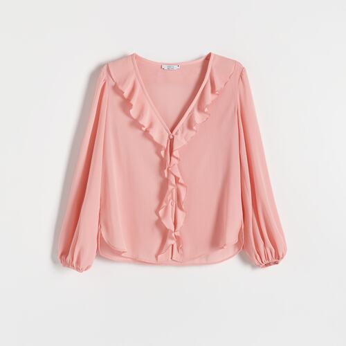 Reserved - Bluzka z ozdobnym dekoltem - Różowy