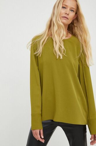 Answear Lab longsleeve kolor zielony dekolt hiszpański
