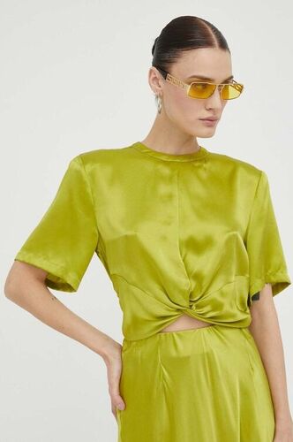 Notes du Nord bluzka z domieszką jedwabiu damska kolor zielony gładka