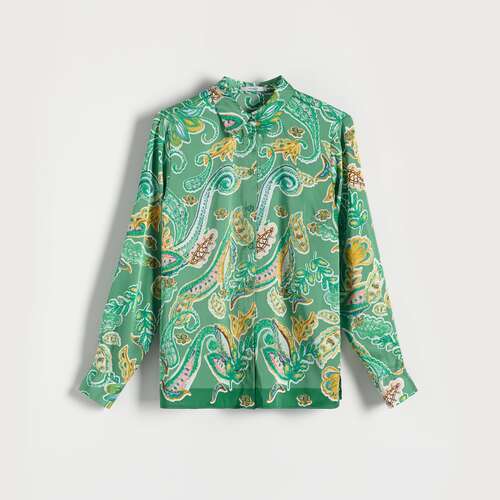 Reserved - Bluzka z wiązaniem w pasie - Zielony