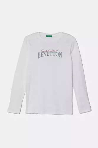 United Colors of Benetton longsleeve bawełniany dziecięcy kolor biały bluzka dziewczęca 3I9WC10MY