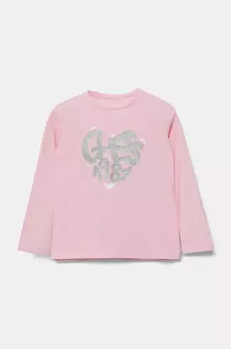 Guess longsleeve dziecięcy modne bluzki dziewczęce kolor różowy K5RI01 K6YW4