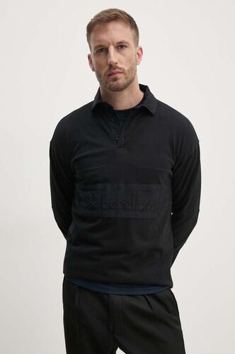 United Colors of Benetton longsleeve bawełniany kolor czarny gładki modne bluzki męskie 3G9WU3020