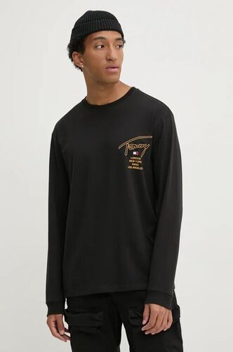 Tommy Jeans longsleeve bawełniany kolor czarny z nadrukiem DM0DM18551