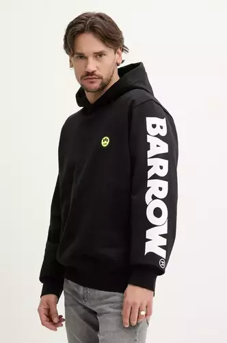 Barrow bluza bawełniana kolor czarny z kapturem z nadrukiem S5BWUAHS086