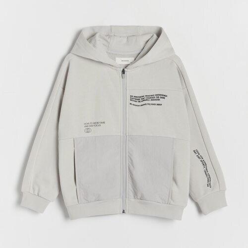 Reserved - chłopięca bluza z kapturem Sweter w ozdobne pasy - Kremowy