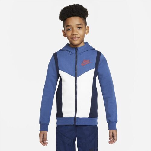 Dzianinowa bluza z kapturem i zamkiem na całej długości dla dużych dzieci (chłopców) Nike Sportswear - Niebieski