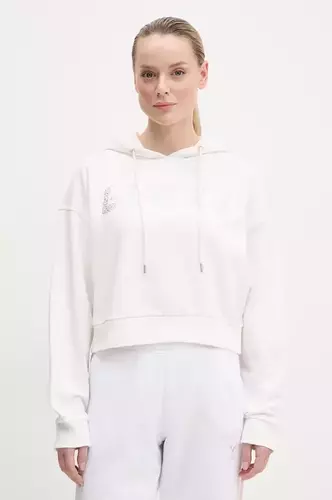 Guess bluza biala bluza damska bawełniana PRIMULA damska kolor biały z kapturem z aplikacją V5GQ09 KCRP0