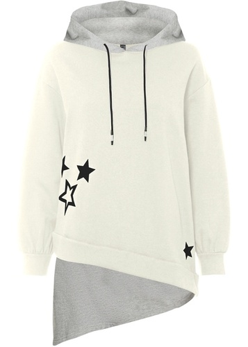 Bluza z kapturem i asymetryczną linią dołu białe bluzy dresowe damskie