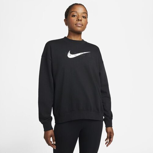 Damska treningowa bluza dresowa z półokrągłym dekoltem i grafiką Nike Dri-FIT Get Fit bluza czarna damska - Czerń
