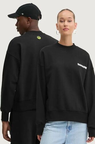Barrow bluza bawełniana kolor czarny bluzy z kapturem czarne damskie z kapturem z nadrukiem S5BWUAHS086