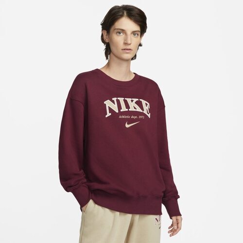Damska bluza dresowa z półokrągłym damska bluza czerwona dekoltem o kroju oversize Nike Sportswear Phoenix Fleece - Czerwony