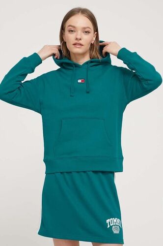 Tommy Jeans bluza bawełniana damska kolor zielony z kapturem z aplikacją DW0DW17326