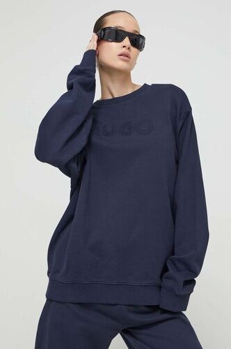 HUGO bluza bawełniana damska kolor niebieski z aplikacją 50512022