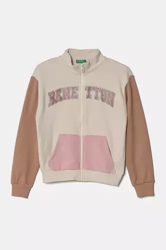 United Colors bluzy dziewczece rozpinane of Benetton bluza bawełniana dziecięca kolor beżowy z nadrukiem 3J68C504N