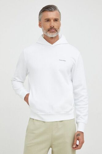 Calvin Klein bluza męska kolor biały z kapturem gładka