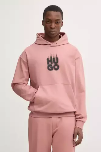 HUGO bluza bawełniana męska kolor różowy z męska różowa bluza kapturem z nadrukiem 50530428