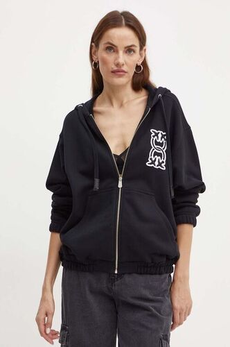 Pinko bluza bawełniana damska kolor czarny z kapturem z aplikacją 103714 A23C