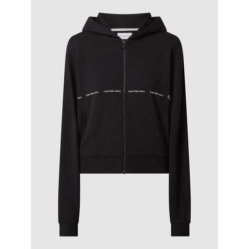 Calvin Klein Jeans bluza damska kolor czarny z kapturem gładka