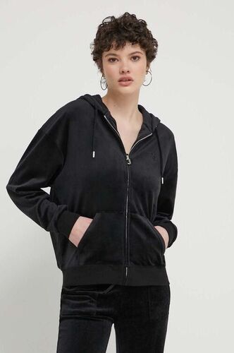 Juicy Couture bluza welurowa kolor czarny z kapturem z aplikacją