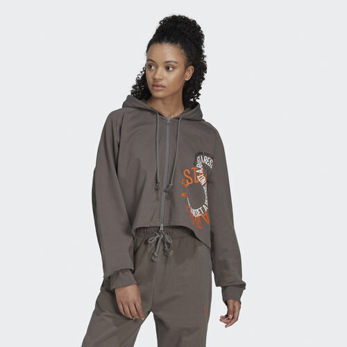 adidas by Stella McCartney Cropped bluza szara damska z kapturem Hoodie