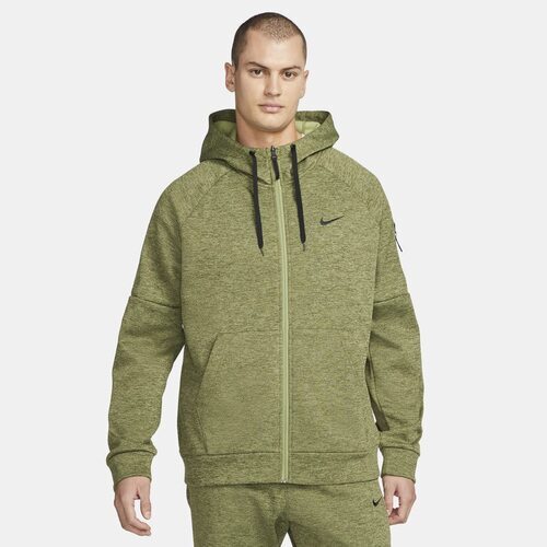 Męska bluza do fitnessu z kapturem i zamkiem na całej długości Nike Therma-FIT fajne bluzy z kapturem męskie - Zieleń