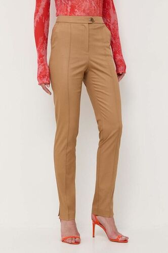 BOSS spodnie damskie kolor beżowy proste high waist
