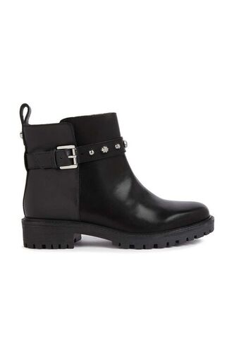 Geox botki skórzane Hoara damskie kolor czarny na płaskim obcasie